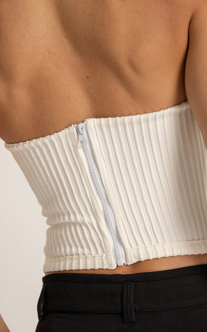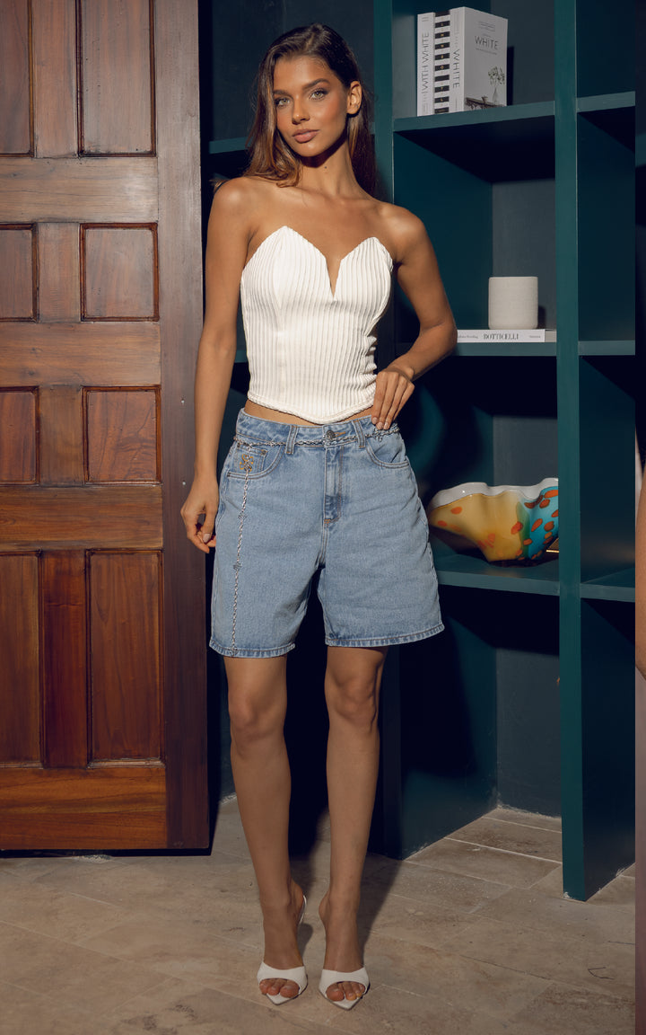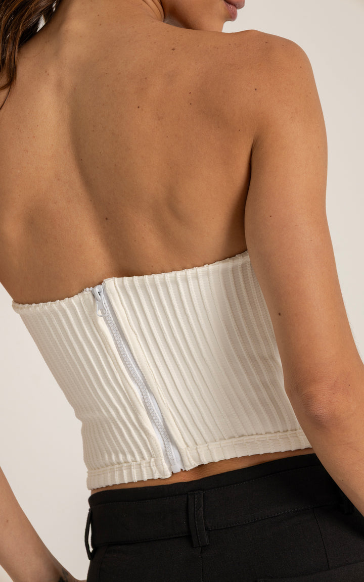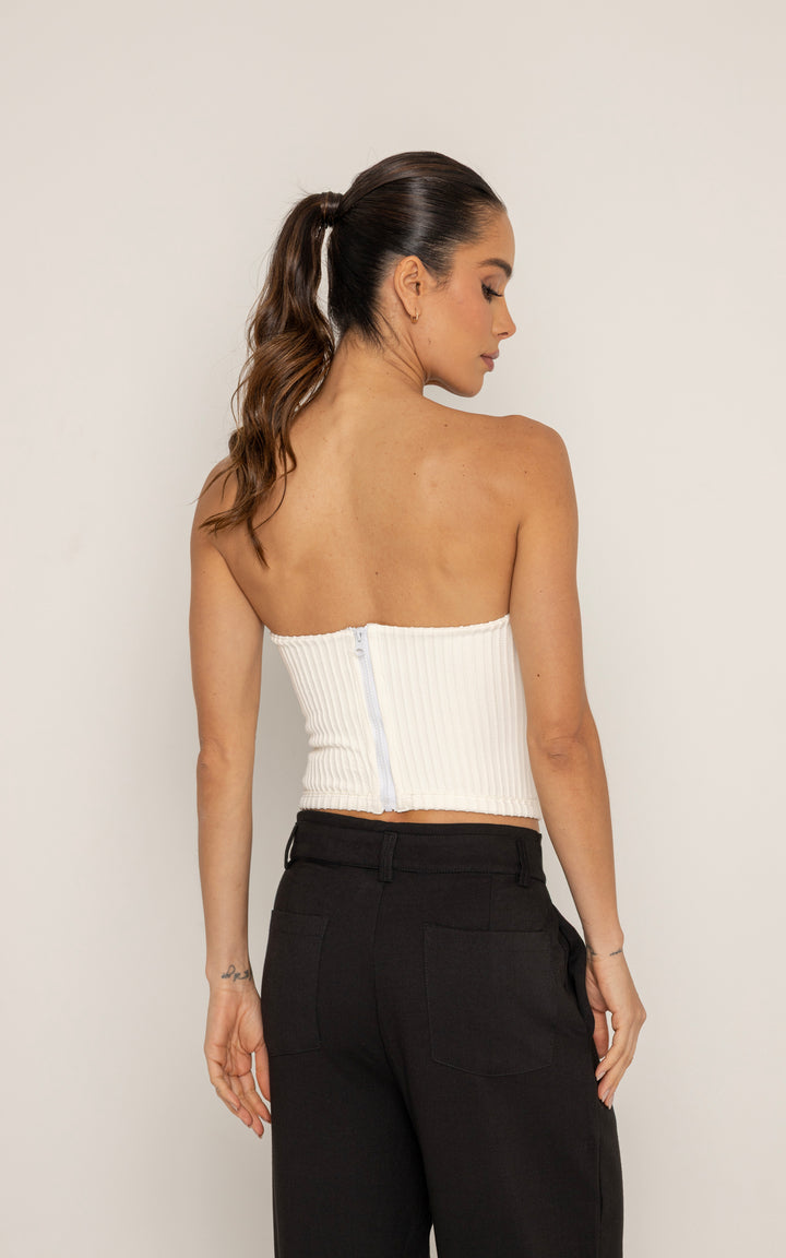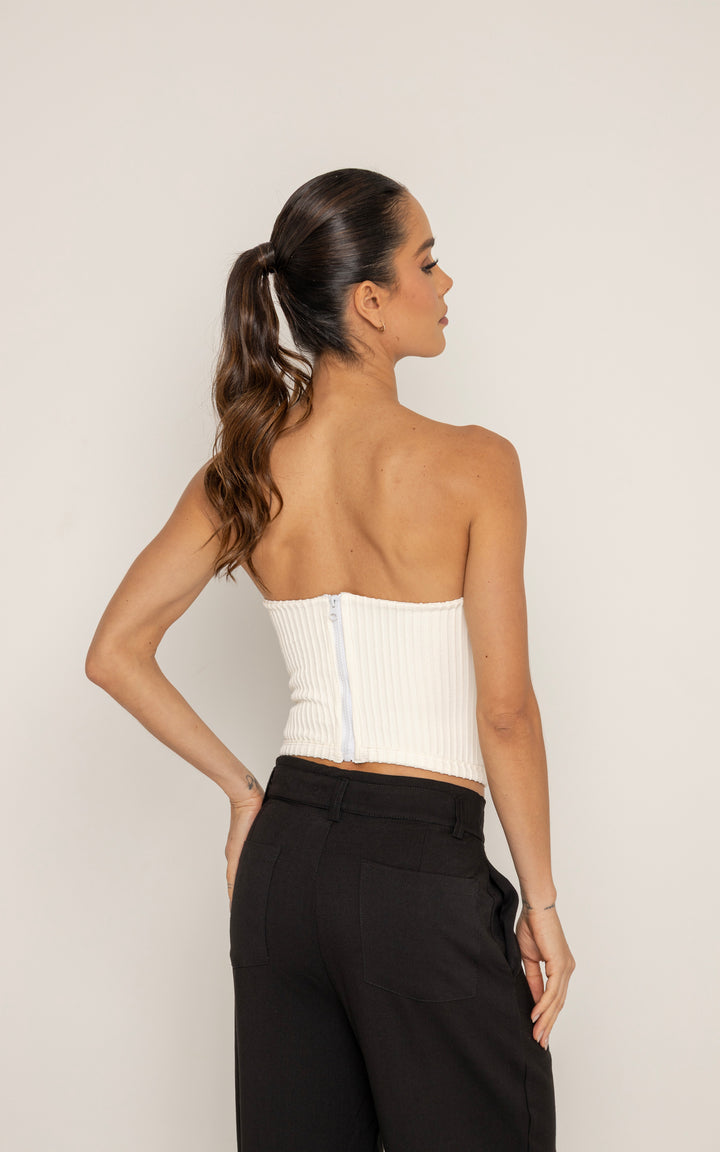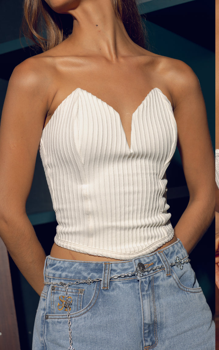 Sabemos que aman los corset y esta es una nueva propuesta que tendrás que tener en tu closet . El Corset Elena está elaborado en un tejido acanalado de alto gramaje que ofrece estructura con elasticidad. Su escote profundo en forma de “V” y diseño strapless lo convierten en una pieza de alto impacto visual que enmarca el torso con firmeza y elegancia.