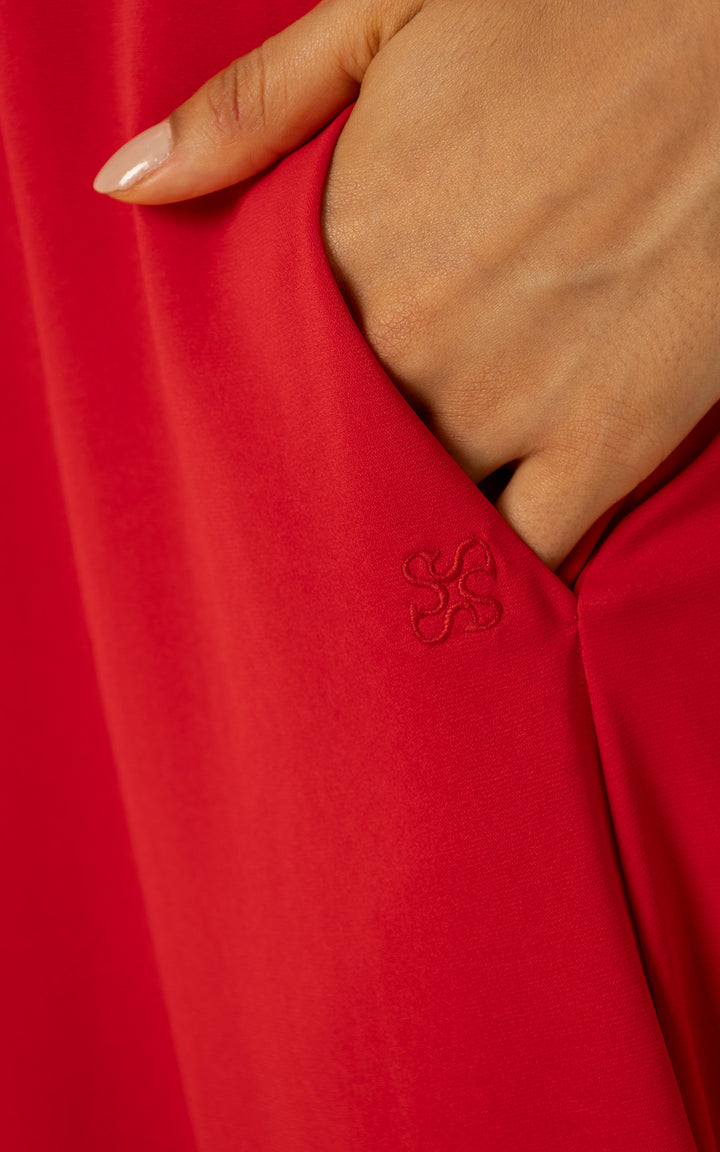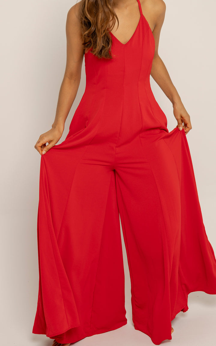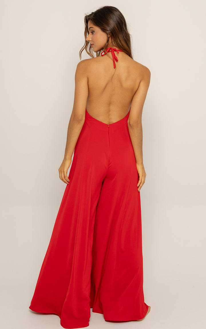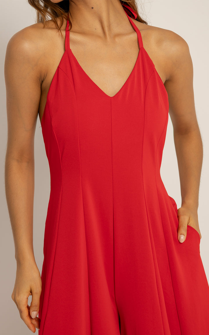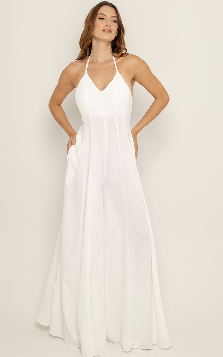 Su corte amplio y largo hasta el suelo da la ilusión de un vestido, pero con la comodidad y funcionalidad de un enterizo con bolsillos laterales.
