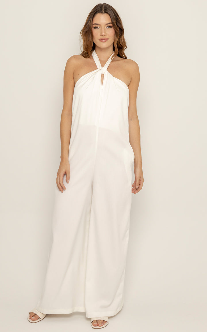 El Enterizo Tiffany es una declaración de elegancia relajada con un diseño que fusiona sensualidad y sofisticación. Confeccionado en un textil fluido y fresco, esta prenda de silueta amplia y espalda descubierta resalta la figura con un efecto halter anudado al cuello y una caída amplia tipo palazzo que alarga la silueta con movimiento etéreo.