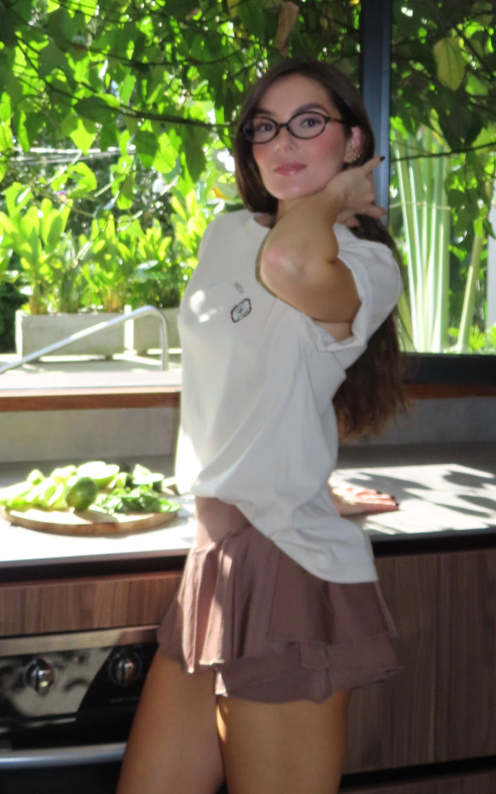 La Faldashort Emma está confeccionada en una tela ligera de caída fluida que permite libertad total al caminar. Su diseño incluye un short interno que brinda seguridad y una capa exterior con doble volante que simula una falda, creando un efecto de movimiento delicado y femenino.