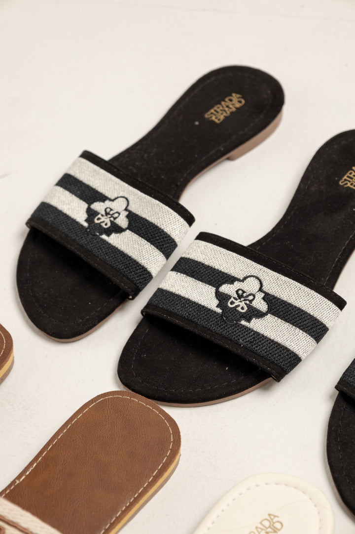 Tira ancha en lona tejida con rayas en negro y marfil, un clásico atemporal que aporta contraste y elegancia.