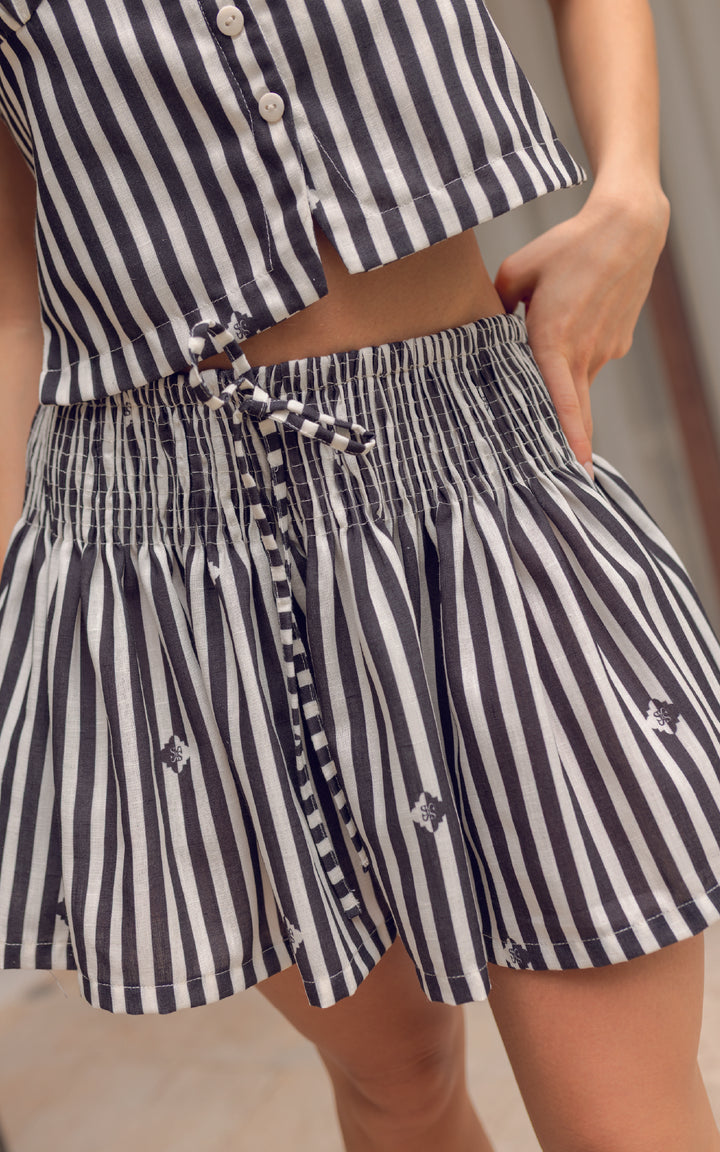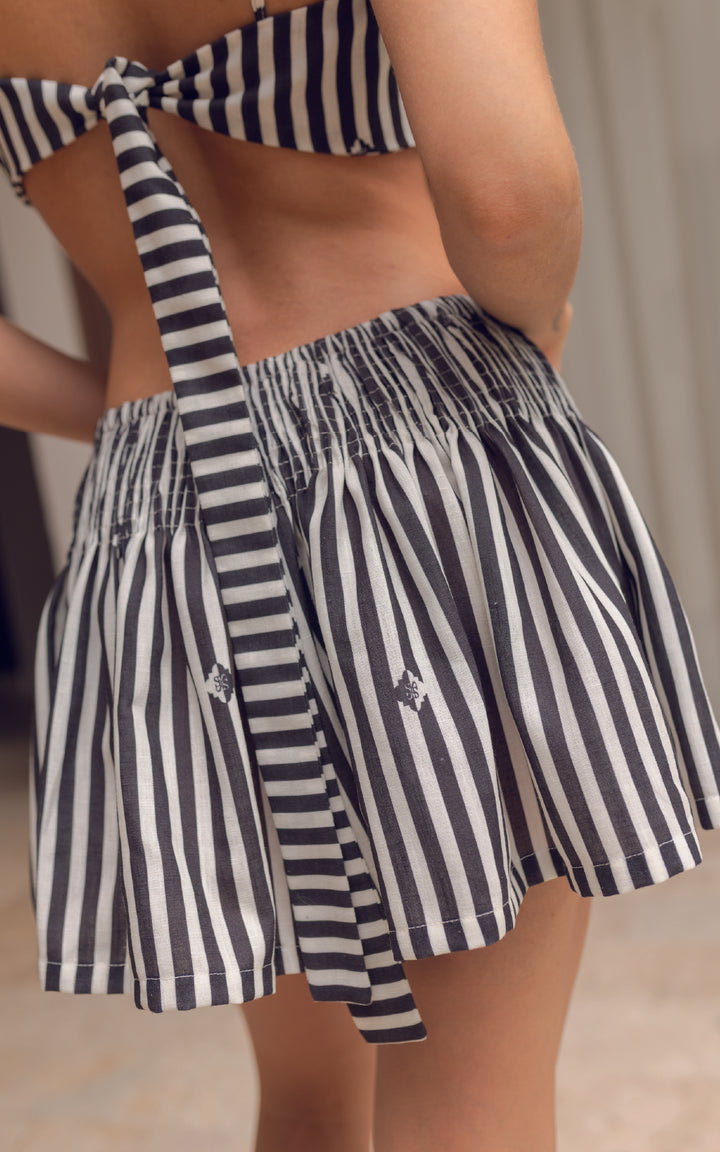 El Short The Print es una prenda fresca, versátil y con mucho estilo. Diseñado con un estampado de rayas verticales que estiliza la figura y detalles gráficos sutiles, este short se convierte en el básico statement de cualquier look veraniego.